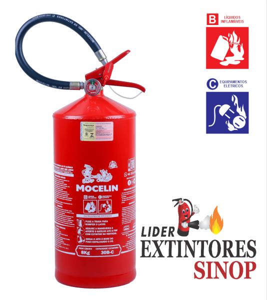 É direcionado aos incêndios de foco B e C — líquidos, sólidos e gases inflamáveis além de equipamentos elétricos. O material também não conduz corrente elétrica, tornando-o ideal para chamas de classe C.